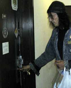 Photo: John shows the quartz type battery and some drawings of it, taps the battery for a moment and the red LED starts glowing.