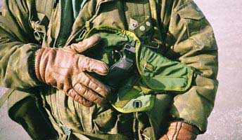 Huomautettakoon tässä välissä, että RK:n sijasta monilla oli karbiini "tulituliaseena". Silti myös pistooli on suositeltava, koska se on aina mukana (mikäs olikaan tulitaistelun sääntö numero 1 ? "Have a gun" eli "ole aseistettu") toisin kuin pitkä ase. Jos pääaseena on TA-kivääri, niin ainoastaan pistooli soveltuu vara-aseeksi, jos on tarkoitus liikkua jalkaisin. Sitäpaitsi RK patruunoineen tuo lisäpainoa vähintään 4 kg, helposti enemmänkin. Ne neljä kiloa voi käyttää hyödyllisemminkin, esim. TA-kiväärin ja pistoolin patruunoihin...