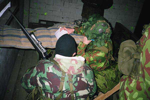 Pikatuliasemassa. Naamiointi tosin puuttuu lähes kokonaan, varsinkin kirkas ase näkyy pitkälle.